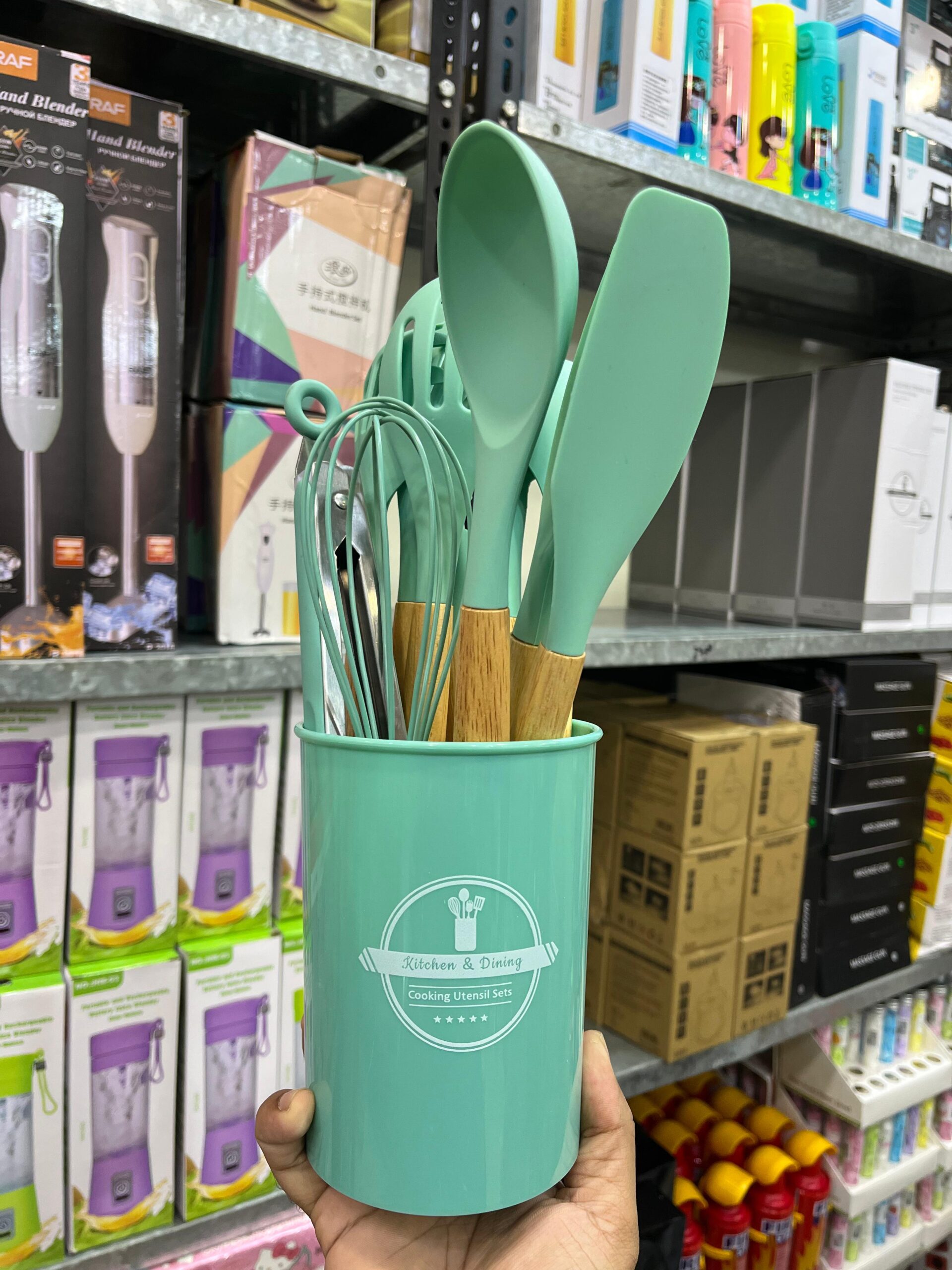 12pcs Silicon Kitchen Utensils Set (Random color)