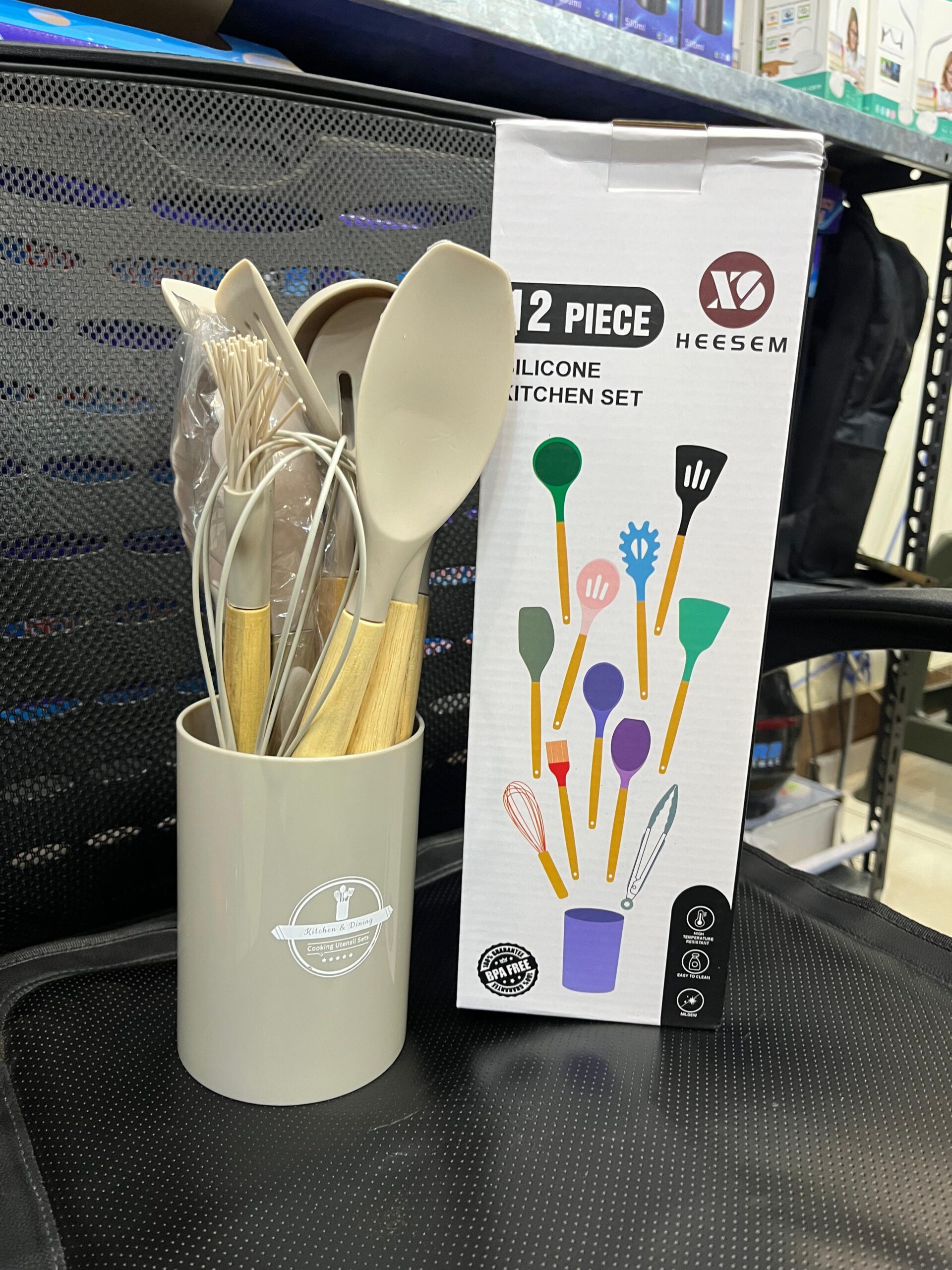 12pcs Silicon Kitchen Utensils Set (Random color)