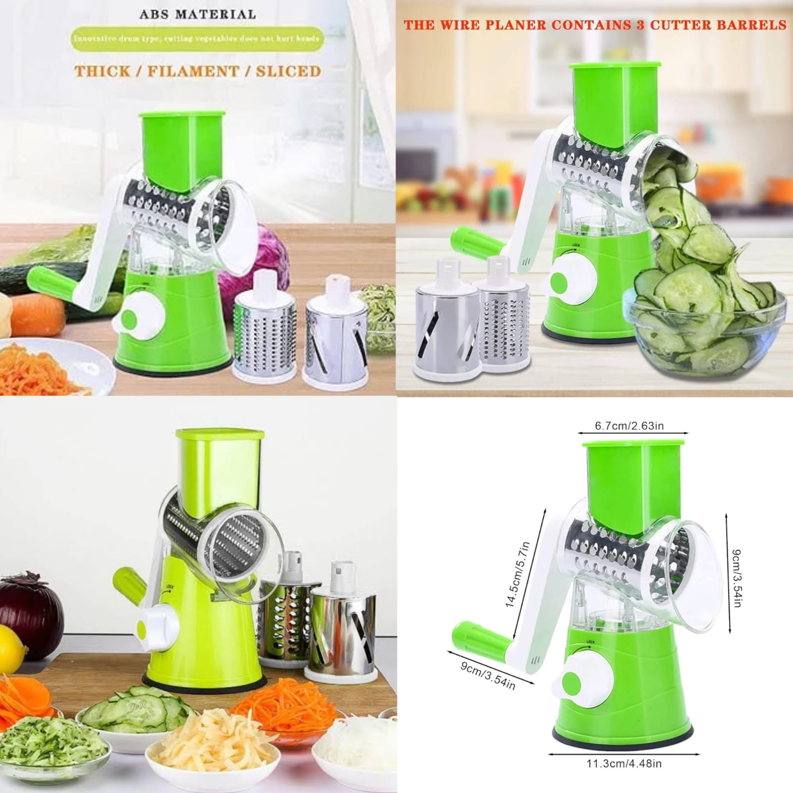 The 3 in 1 Table Top Drum Multifunctional Roller Vegetable Cutter is an innovative manual slicer designed to simplify your kitchen tasks. With three specialized drums (slicing, fine shredding, and coarse grating), it handles everything from carrots and cucumbers to potatoes and cheese.