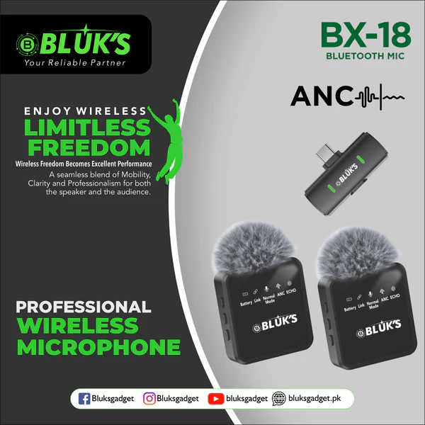 BLUK’S BX-18 | Lavaliere Collar Wireless ANC Mic – Dual Mic Set