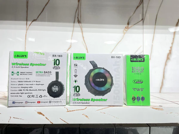 Experience bold, immersive sound with the BLUK’S BX-183, your go-to portable Bluetooth speaker built for power, portability, and personality. Whether you’re at home, on the move, or lighting up a party, the BX-183 delivers booming bass, vibrant lighting, and smart wireless functionality — all in one compact design.