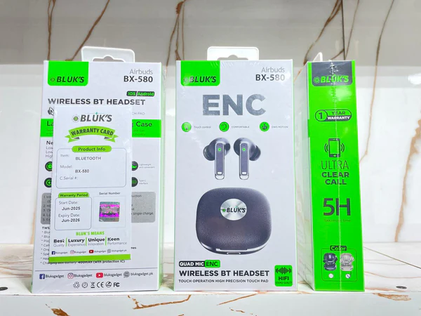 🎧 High-Definition Sound Meets Smart Control Step into the world of immersive audio with the BLUK’S BX-580 — a cutting-edge wireless earbuds set featuring Quad-Mic ENC, a powerful 13mm dynamic speaker, and precision touch controls. Whether you’re gaming, calling, or just vibing to your playlist, this headset ensures unmatched clarity and control.
