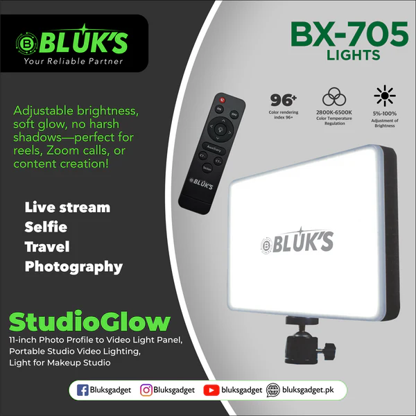 Level up your lighting game with the BX-705 StudioGlow, a sleek 11-inch panel designed for stunning profile shots and video production. Whether you’re creating content, streaming, or capturing portraits, this ultra-thin light panel delivers soft, evenly diffused lighting for flawless results. With adjustable brightness and color temperature, it adapts perfectly to your environment — making every shot studio-quality. Ideal for YouTubers, makeup artists, and professionals who demand precision lighting.